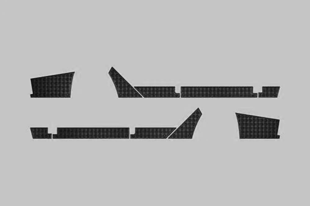 We have redesigned the conventional chequer plate traditionally made from thick heavy aluminium into a more dynamic wow and rigger real carbon fibre chequer plate design. Reducing weight and wind/shear noise whilst increasing strength to weight ratio and adding a chamfered edge to give the product a high class finish.